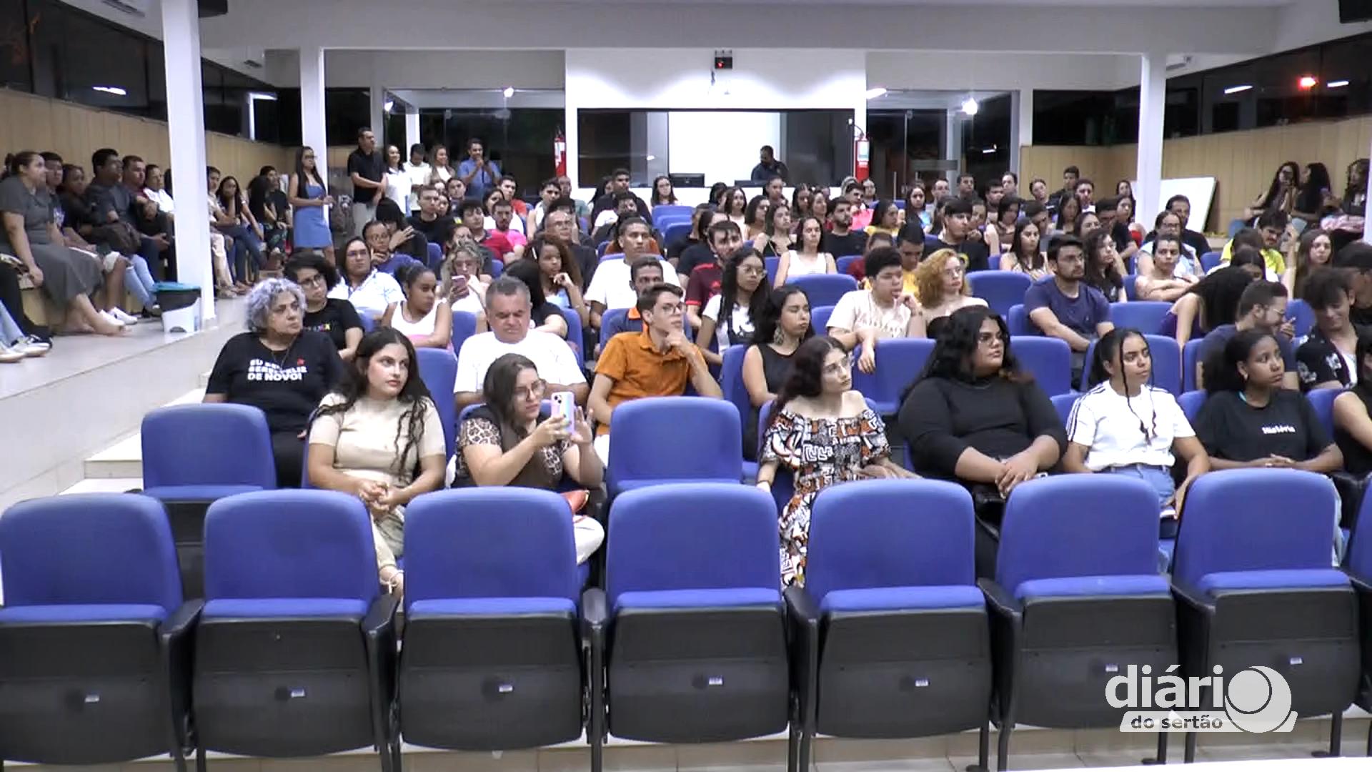O auditório da Universidade Federal de Campina Grande (UFCG), campus Cajazeiras, recebeu a exibição do longa-metragem cearense “Uma Voz Chamada Francisca”. A obra cinematográfica, que aborda temas sociais de grande relevância como violência contra a mulher, feminicídio, direitos das mulheres, questões de gênero e a religiosidade popular do Nordeste, promoveu um intenso debate no ambiente acadêmico.