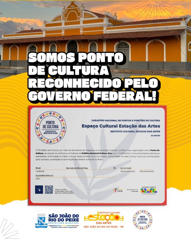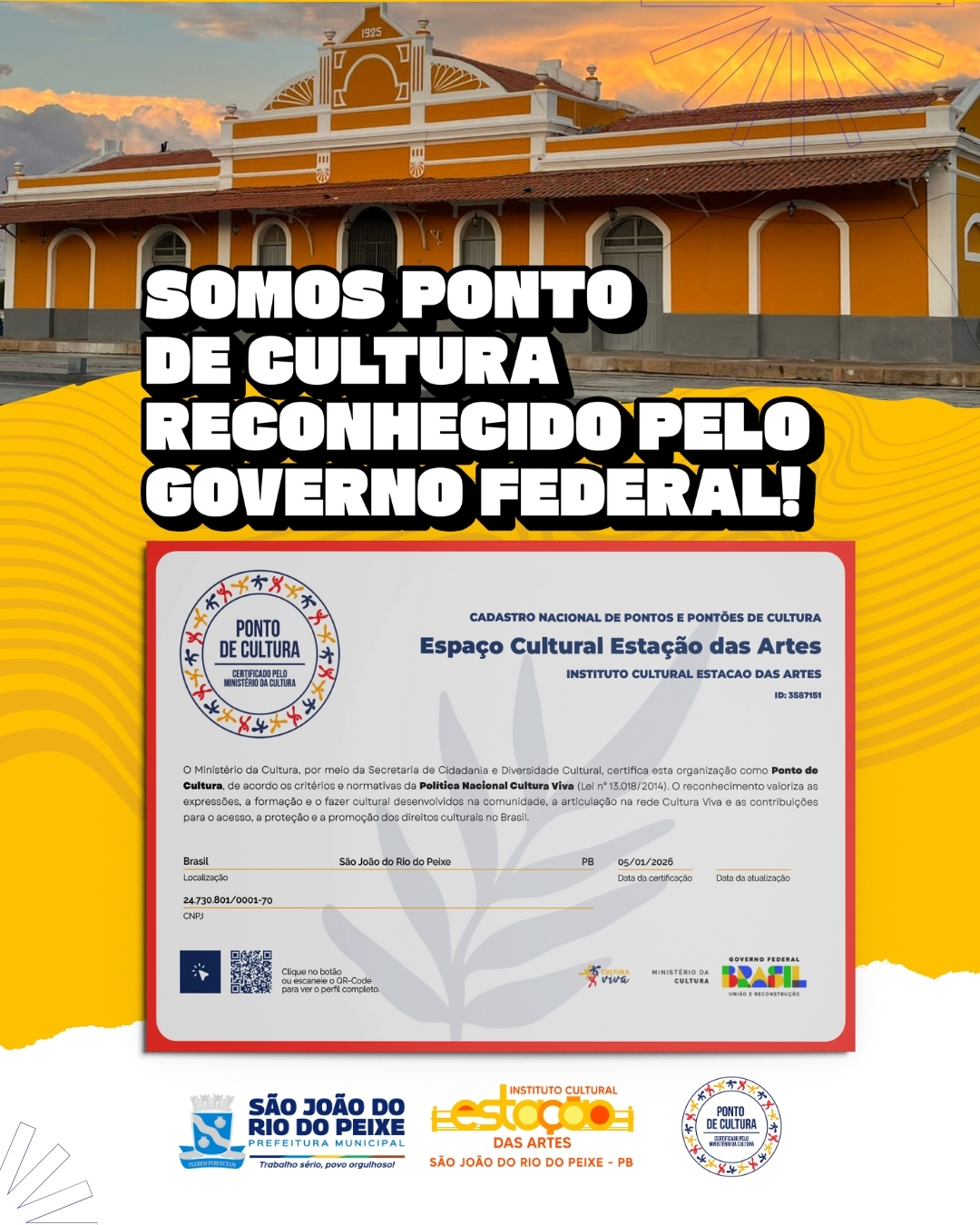 O Espaço Cultural Estação das Artes, por meio do Instituto Cultural Estação das Artes (ICEA), no município de São João do Rio do Peixe, Sertão da Paraíba, foi oficialmente reconhecido como Ponto de Cultura, integrando a Rede Cultura Viva, do Ministério da Cultura.