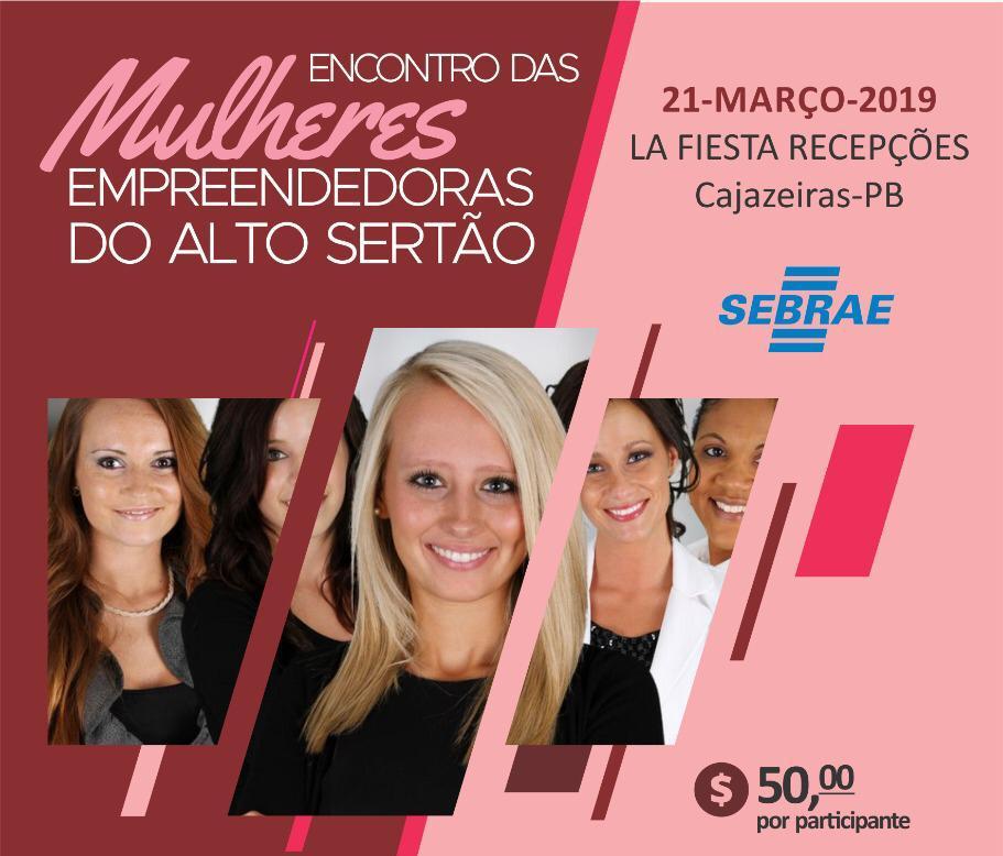 Cajazeiras vai sediar no próximo dia 21 de março o Encontro das Mulheres Empreendedoras do Sertão. O evento acontecerá na La Fiesta Recepções, que fica na avenida José Donato Braga (antiga Estrada do Amor), a partir das 18:30 (abertura dos credenciamentos).