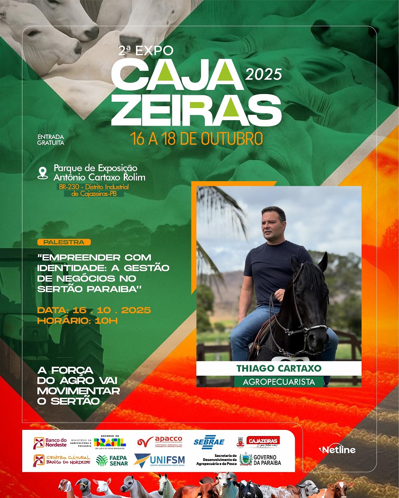 A programação vai começar às 10h de quinta-feira (16) com a palestra “Empreender com identidade: a gestão de negócios no Sertão da Paraíba”, ministrada pelo agropecuarista Thiago Cartaxo.