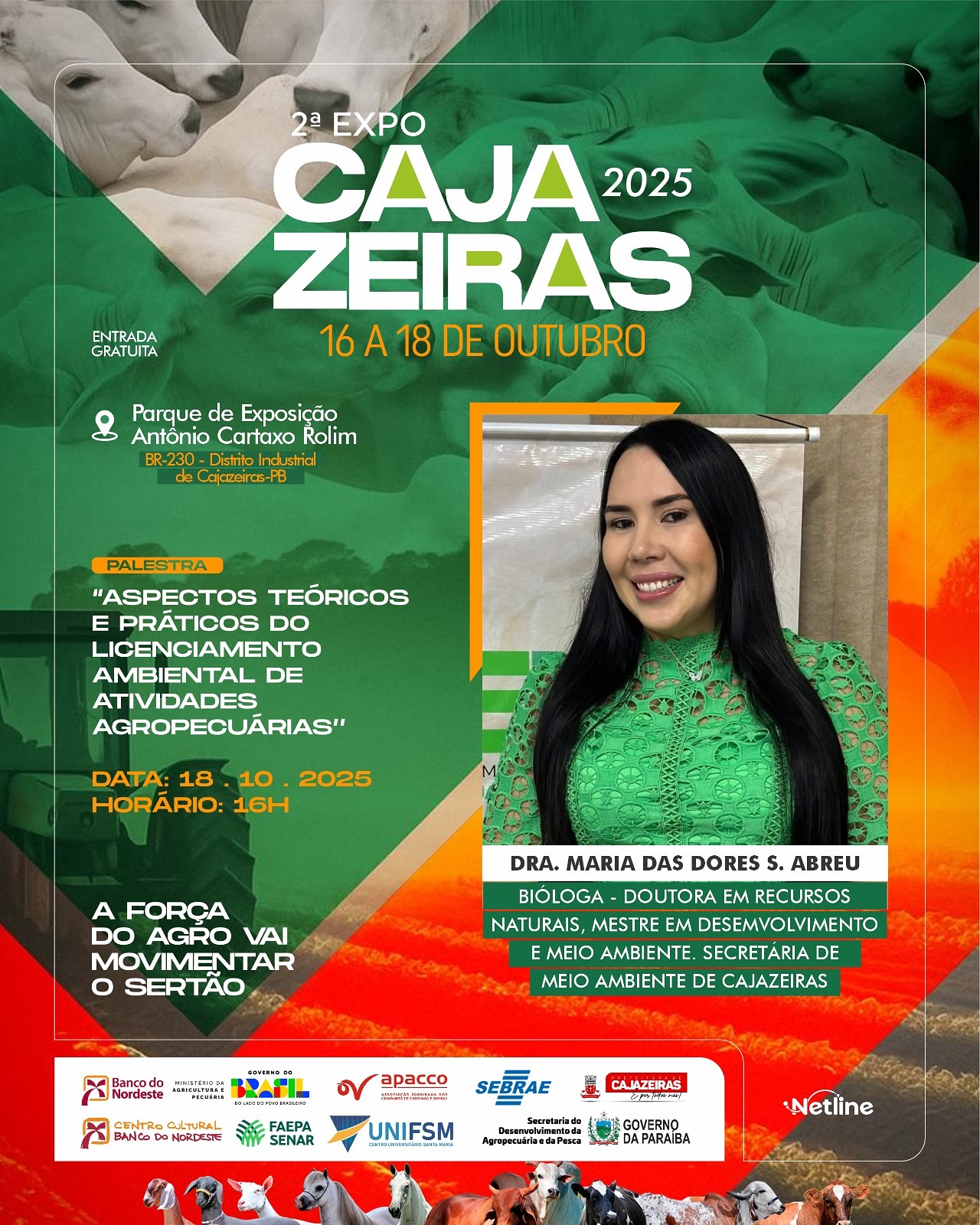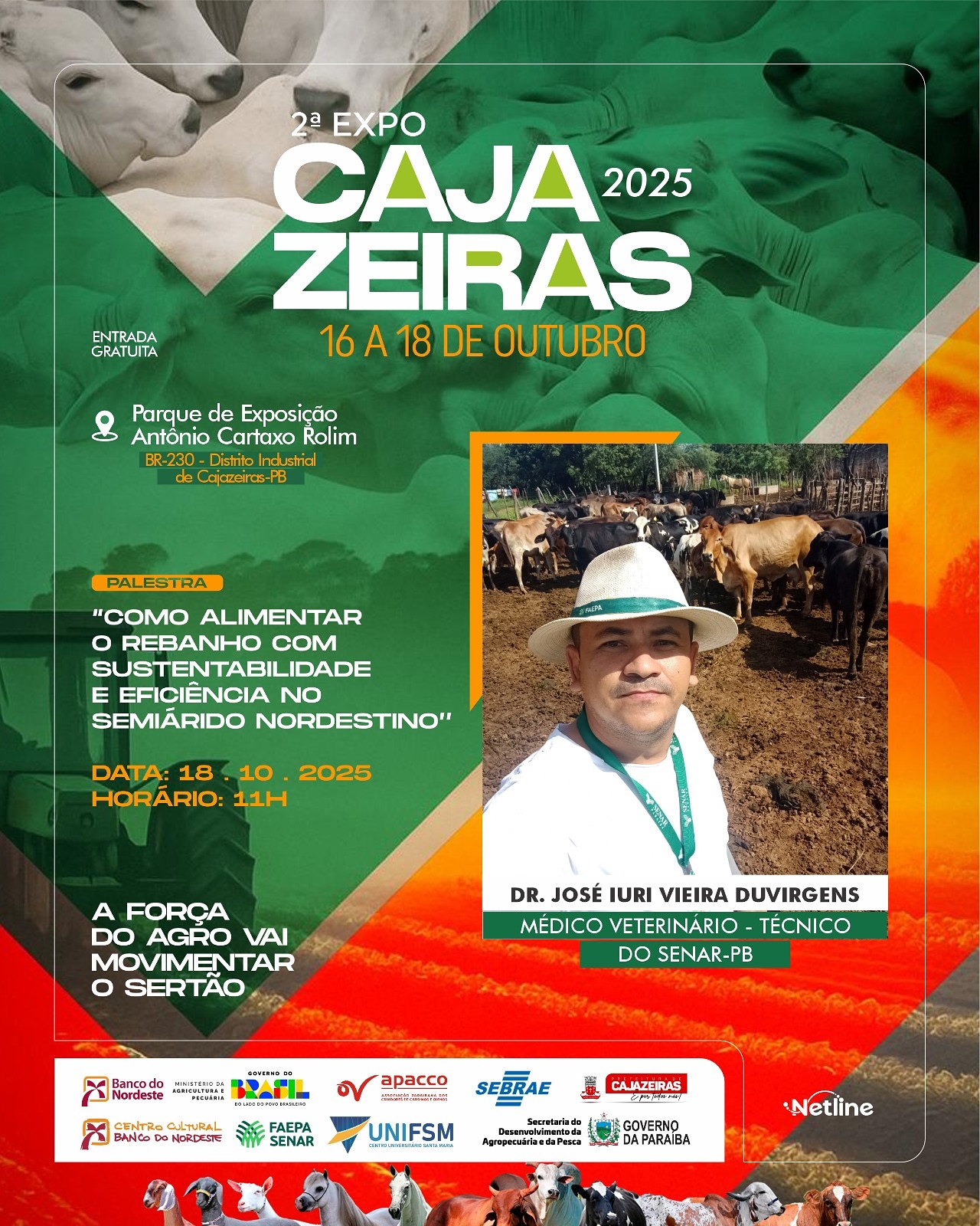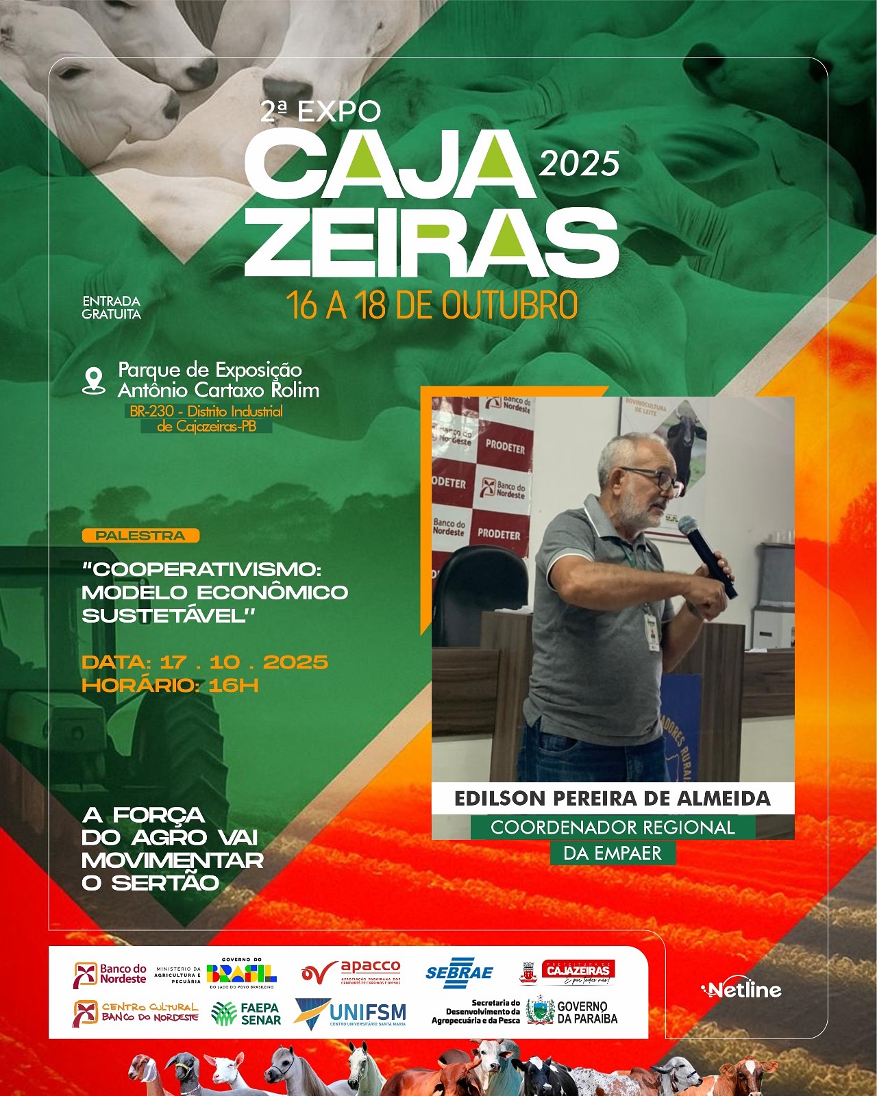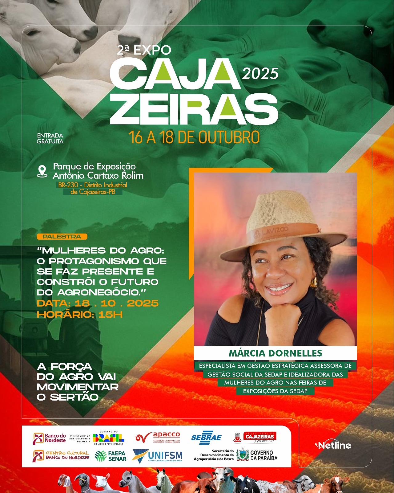 Está tudo pronto para a 2ª ExpoAgro Cajazeiras 2025, que acontece de 16 a 18 de outubro no Parque de Exposição Antônio Cartaxo Rolim. O evento, que tem parcerias do Governo do Estado, da Prefeitura de Cajazeiras e outras entidades públicas e privadas, vai promover diversas palestras, treinamentos, mostra de raças, torneio leiteiro, distribuição de alevinos, stands para negócios, culinária regional e atrações culturais.