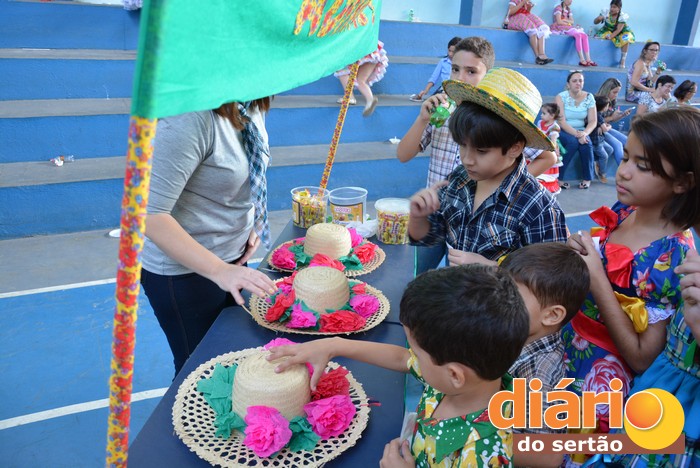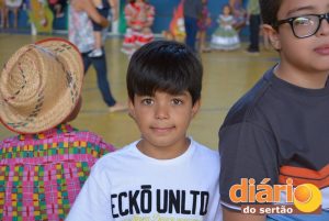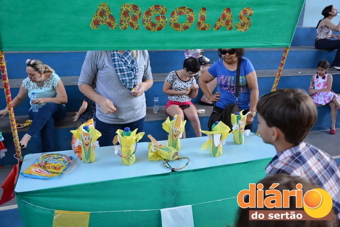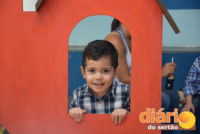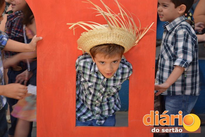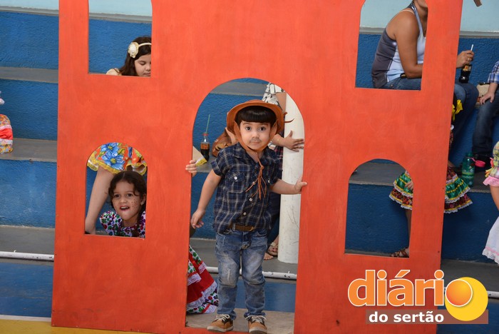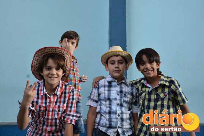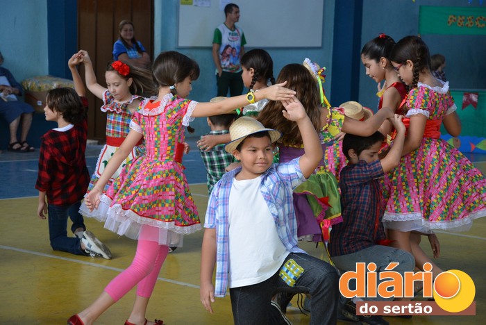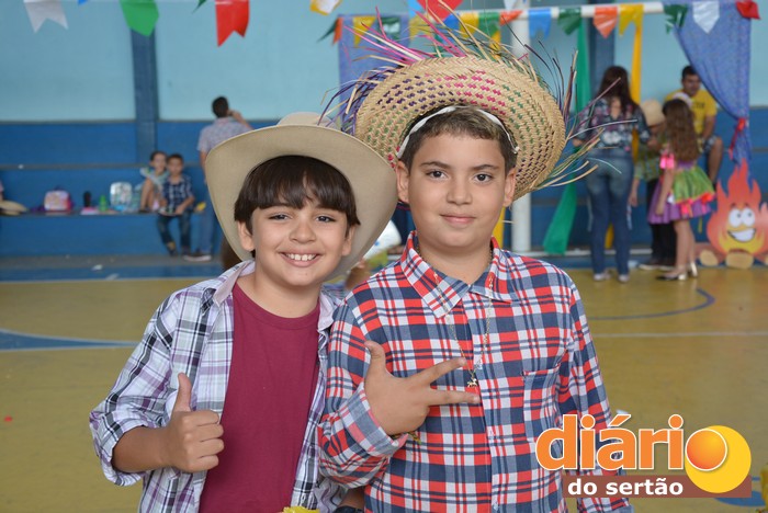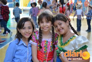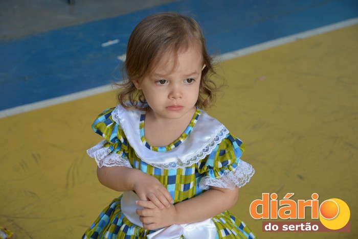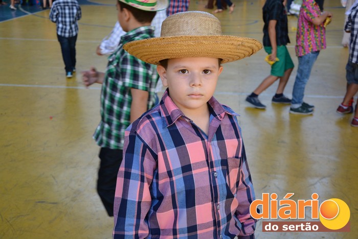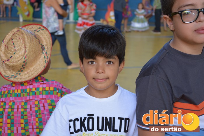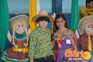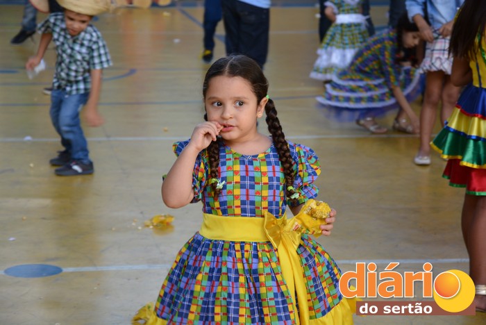 No ginásio da escola, os pequenos se divertiram dançando quadrilha, participando de brincadeiras com temas regionais e, claro, saboreando comidas típicas.