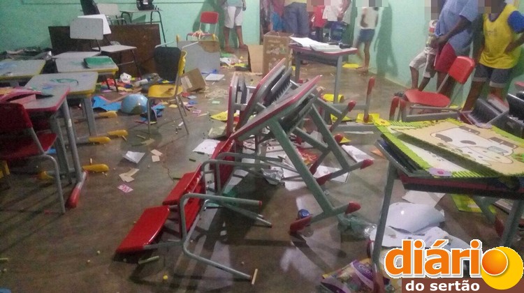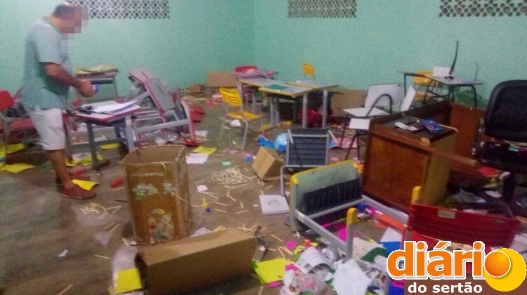 De acordo com a secretária, vândalos adentraram a escola e destruíram todo o material de ensino, quebraram móveis e equipamentos, destruíram os trabalhos dos alunos e a ornamentação das paredes.