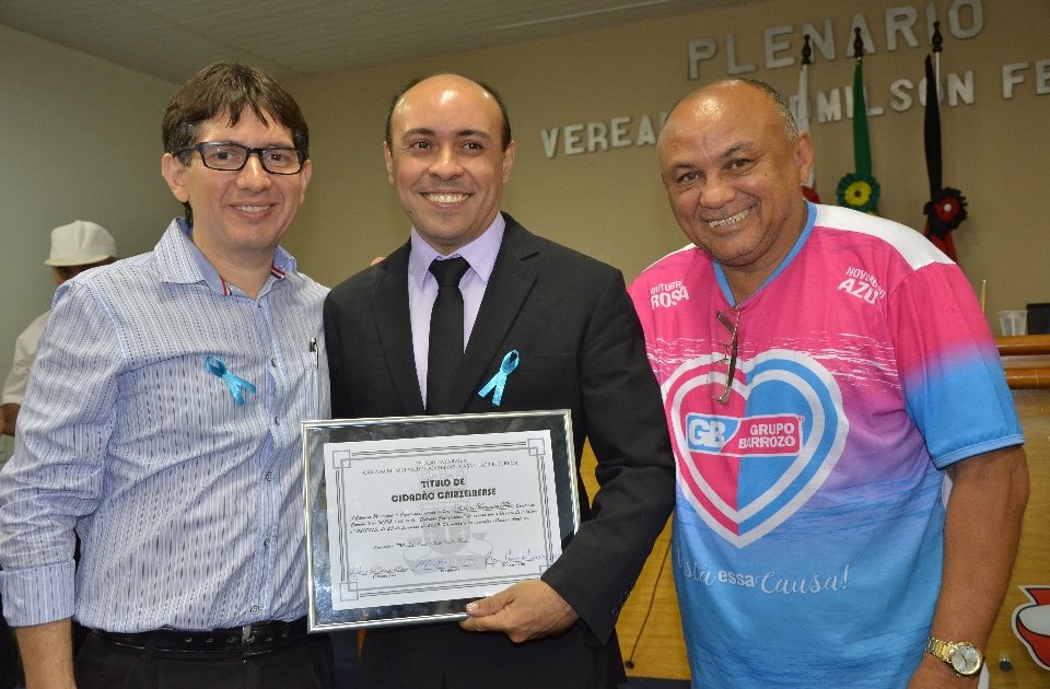 Marcos Barros, presidente da Câmara; Antônio Fernandes e Álysson Voz e Violão (Foto: Cavalcante Jr.)