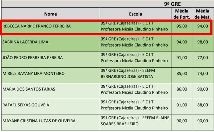 VEJA LISTA DA REGIONAL DE CAJAZEIRAS
