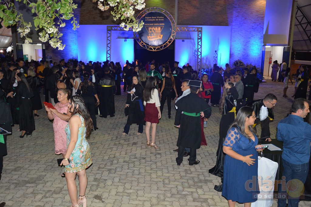 Na noite desta quarta-feira (19), formandos da Faculdade Santa Maria, dos cursos de Arquitetura e Urbanismo, Fisioterapia, Enfermagem, Biomedicina, Nutrição, Medicina, Administração, Psicologia, Farmácia, Odontologia, Engenharia Civil participaram da colação de grau unificada dos cursos em solenidade que aconteceu no ginásio do campus da UFCG em Cajazeiras, Sertão do estado.