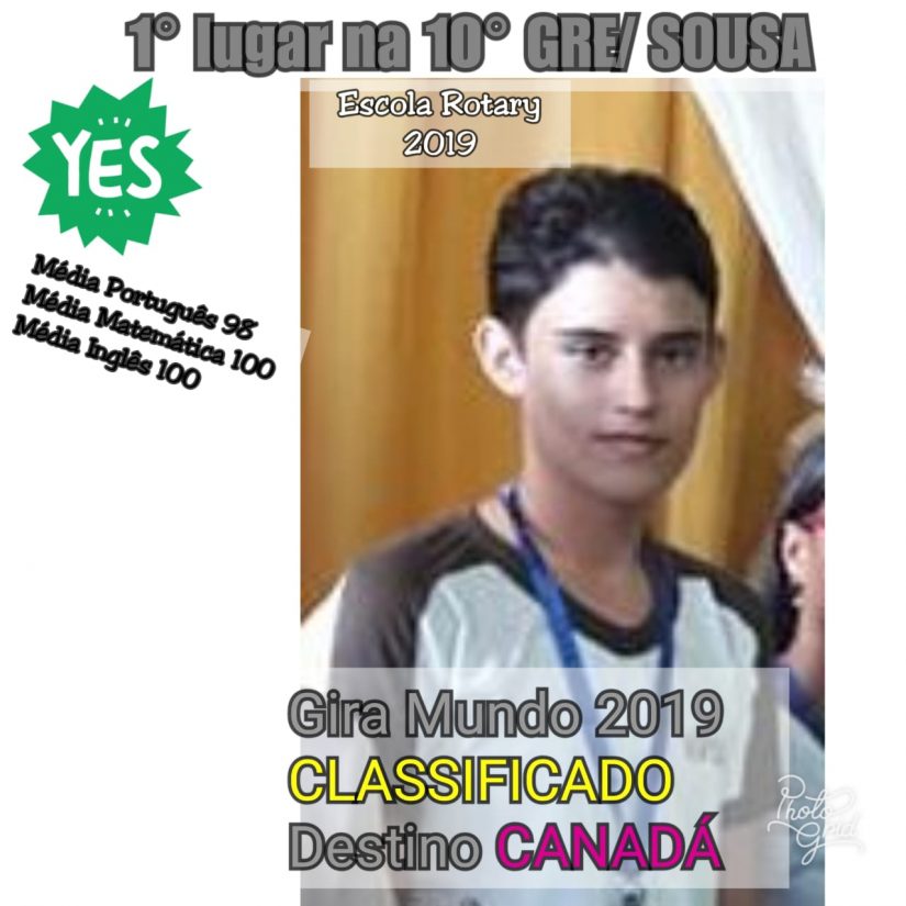 Na escola Dr. Thomaz Pires (Roraty), o aluno Daniel de Oliveira Sousa, que cursa o 2° ano do ensino médio também foi classificado para o intercâmbio e vai para o Canadá.