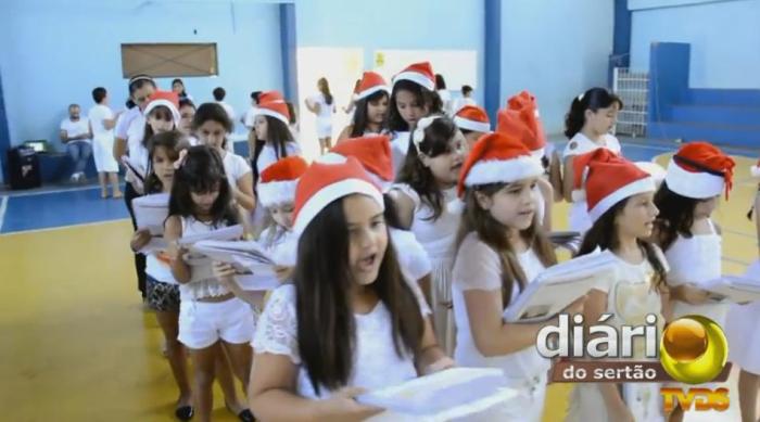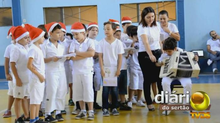 No ginásio da escola, os alunos do ensino infantil e fundamental participaram de várias apresentações com temática natalina. Houve números de dança, teatro com alto de natal, coral e até um minisanfoneiro dando um show para o público.
