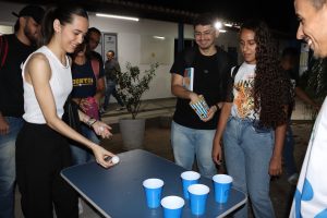 Os estudantes que fazem parte do projeto Protagonismo Discente na Graduação, Helen Cristina, Guilherme Estrela e José Valdertônio falaram da participação na elaboração dos jogos para o evento e da importância do projeto.