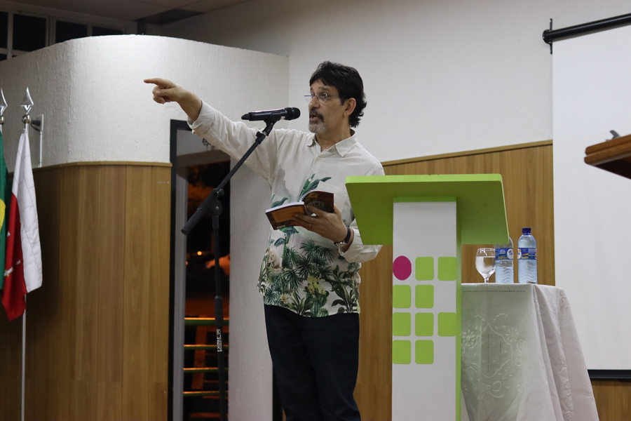 Poeta Jessier Quirino nas celebrações do aniversário de 30 anos do IFPB de Cajazeiras (Foto: Mateus Rolim/TV Diário do Sertão)