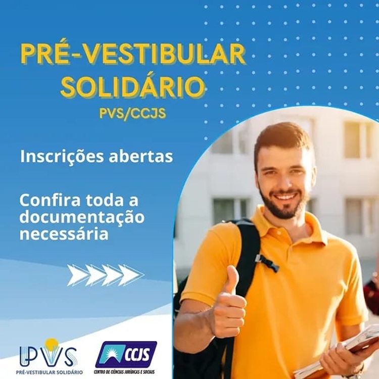 O Pré-Vestibular Solidário, projeto de extensão do Centro de Ciências Jurídicas e Sociais (CCJS) da UFCG – Campus Sousa, está com matriculas abertas para turma de 2025. São 45 vagas disponíveis, das quais 40 receberão bolsa de estudos no valor de R$ 200 mensais para auxílio nas despesas educacionais.
