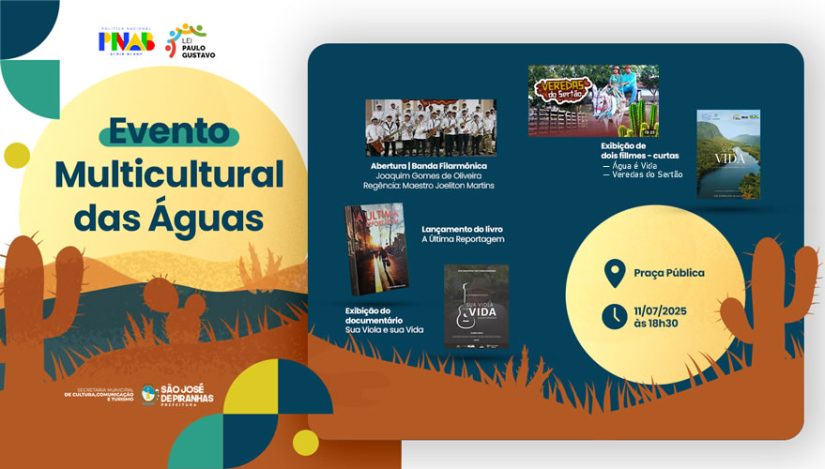 A Prefeitura Municipal de São José de Piranhas, por meio da Secretaria de Cultura e Turismo, realiza nesta sexta-feira, 11 de julho, a partir das 18h, uma noite dedicada à cultura local na Praça Pública da cidade. O evento, aberto ao público, promete emocionar e valorizar a arte sertaneja em suas diversas expressões.