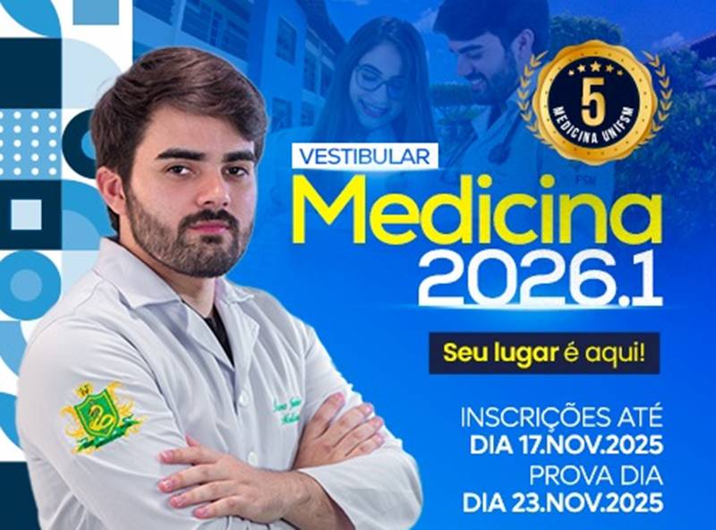 As inscrições para o vestibular de Medicina 2026.1 do Centro Universitário Santa Maria (UNIFSM) estão abertas. Os candidatos têm até o dia 17 de novembro de 2025 para conferir o edital e se inscrever através deste site oficial da instituição (CLIQUE AQUI). A prova será realizada, de forma presencial, no dia 23 de novembro, em Cajazeiras-PB.