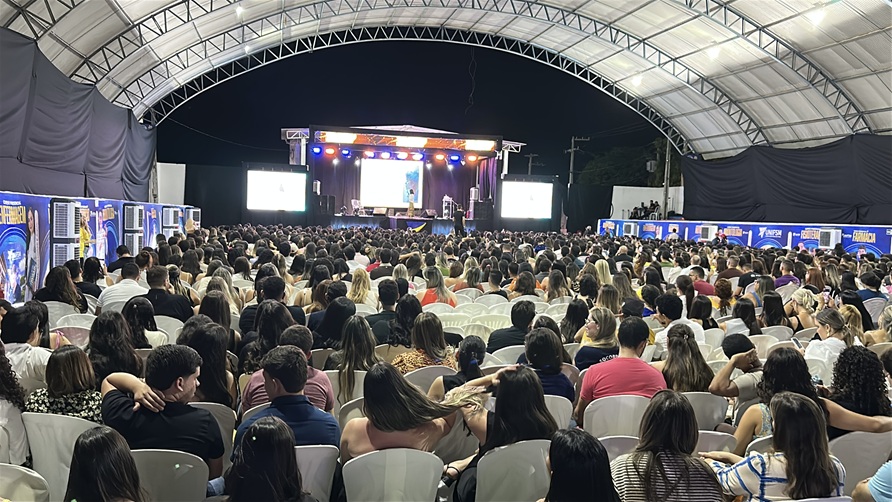 O ginásio da AABB recebeu um público vibrante, acolhedor e cheio de expectativas para o grande evento, que já se consolida como o maior congresso acadêmico do Alto Sertão paraibano.