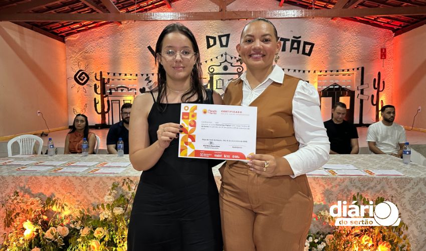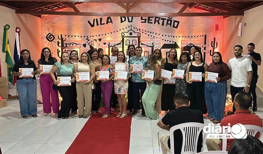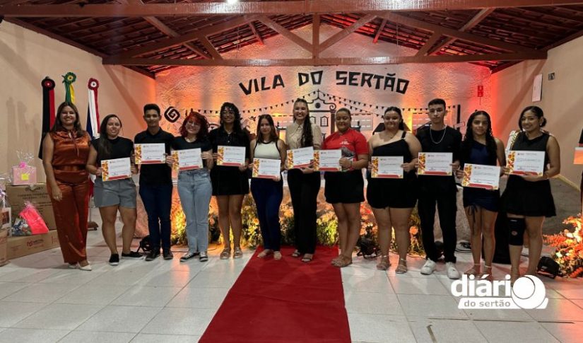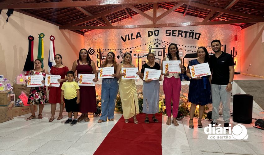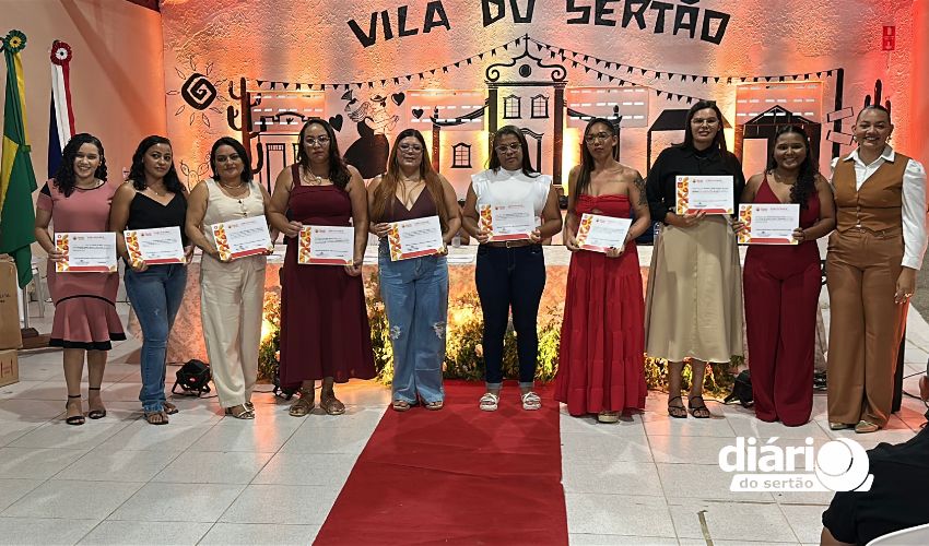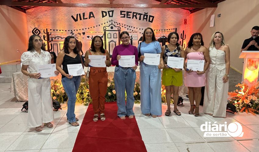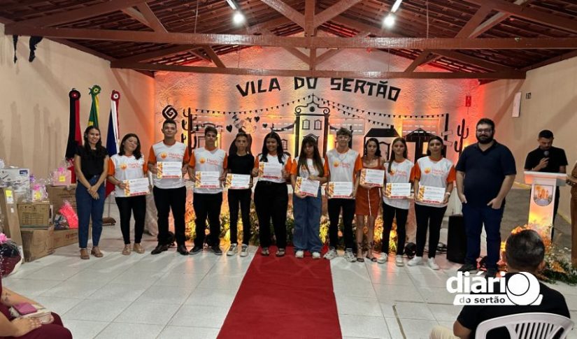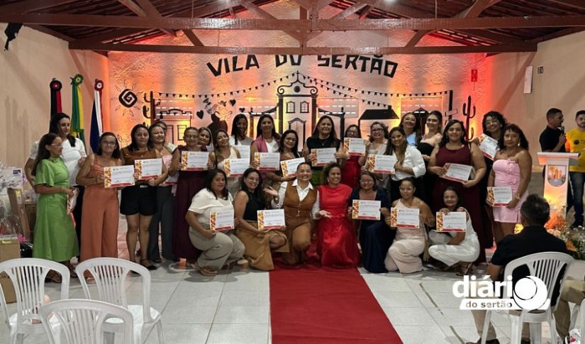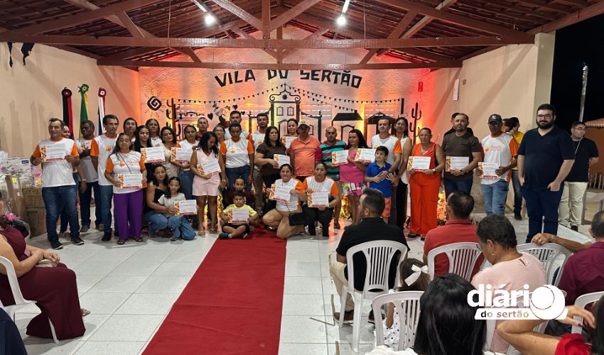A cerimônia da entrega de certificados dos cursos de qualificação profissional da Associação Cultural Pisada do Sertão aconteceu na Vila do Sertão, em Poço de José de Moura, com atendidos que vão de adolescentes a idosos.