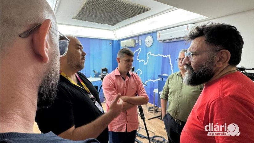 Secretário Cláudio Furtado nos estúdios da TV Diário do Sertão em Cajazeiras (Foto: TV Diário do Sertão)