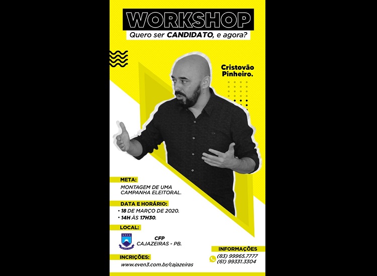 Cristóvão está à frente do workshop “Quero ser candidato, e agora?”, que acontecerá em Cajazeiras no próximo dia 18, das 14h às 17h30h, no campus da Universidade Federal de Campina Grande (UFCG).