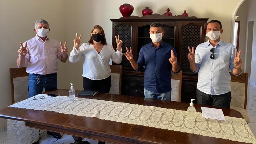 Da esquerda para a direita: Chico Pereira (prefeito), Alderi Caju (ex-prefeita), Van do Viana (candidato a prefeito) e Pedro Paulo (candidato a vice-prefeito)