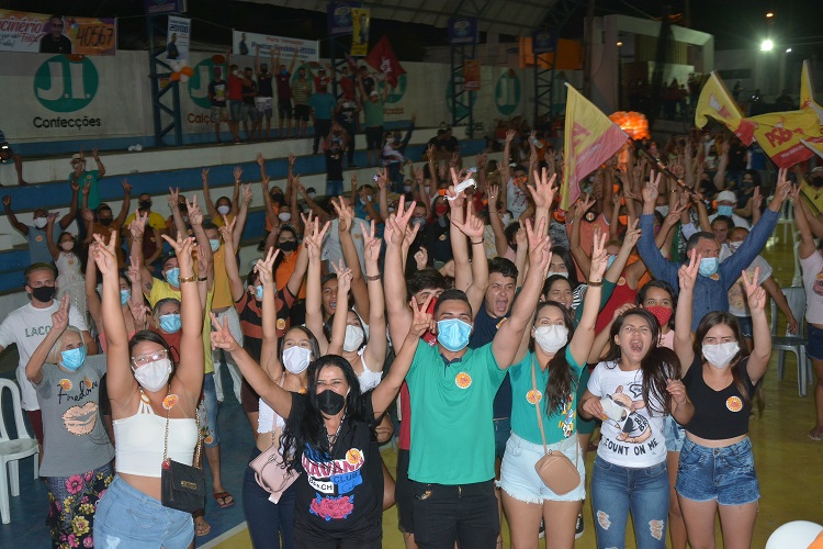 Agora é oficial. Apesar de um público limitado devido às orientações sanitárias da pandemia, não faltaram empolgação e festa para comemorar a homologação da candidatura de Marquinhos Campos a prefeito de Cajazeiras na convenção do PSB e partidos aliados.