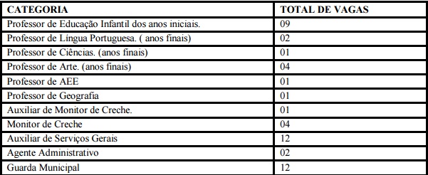 A Prefeitura da cidade de Pombal, no Sertão Paraibano vai realizar processo seletivo com 49 vagas para contratação temporária, válida apenas para o ano de 2017. Os cargos ofertados são: professor de Educação Infantil nos anos iniciais, professor de Língua Portuguesa, Geografia, Ciências e Arte dos anos finais, professor de AEE, auxiliar de monitor de creche, monitor de creche, auxiliar de serviços gerais (Zona Urbana), agente administrativo e guarda municipal.
