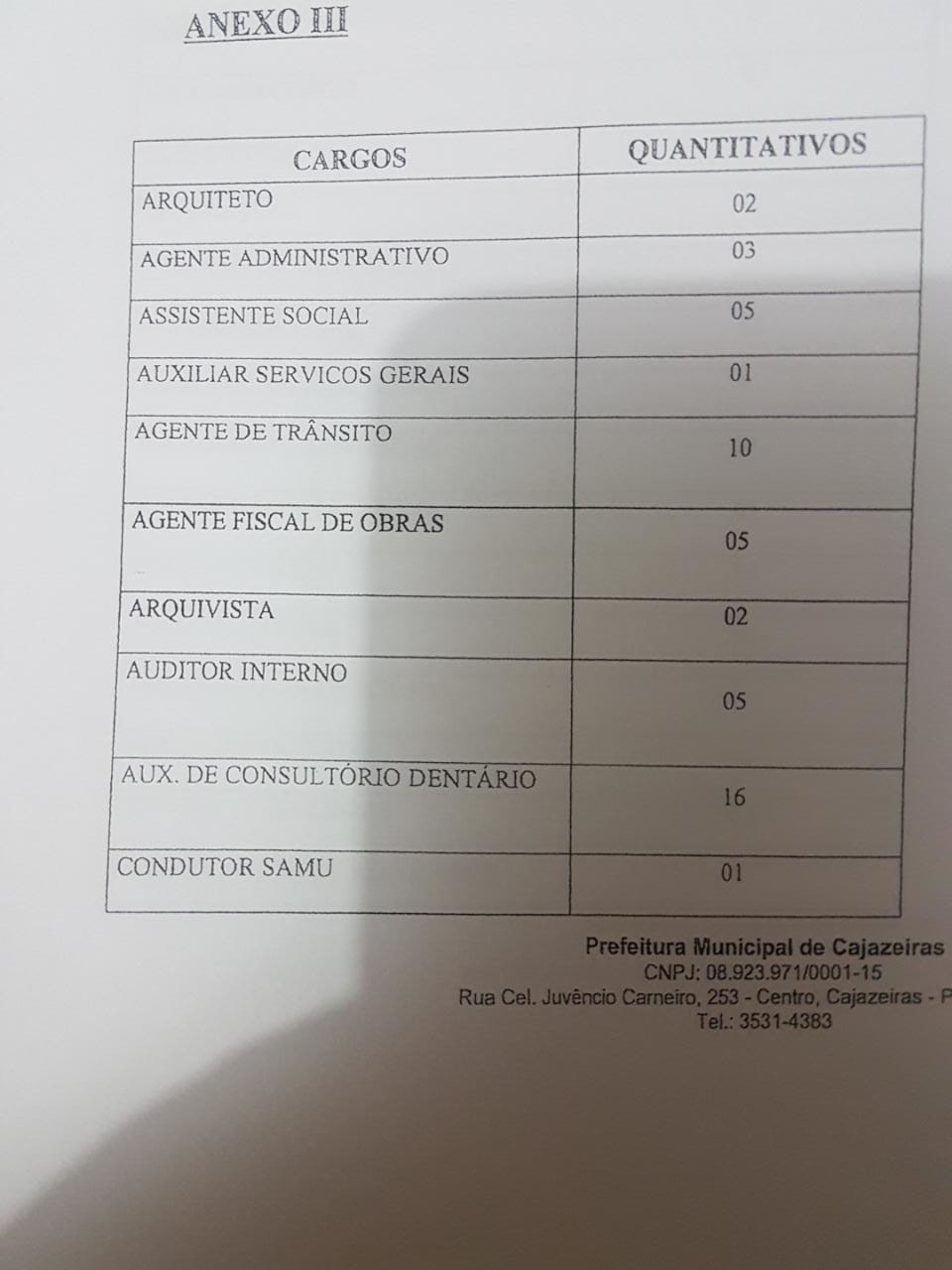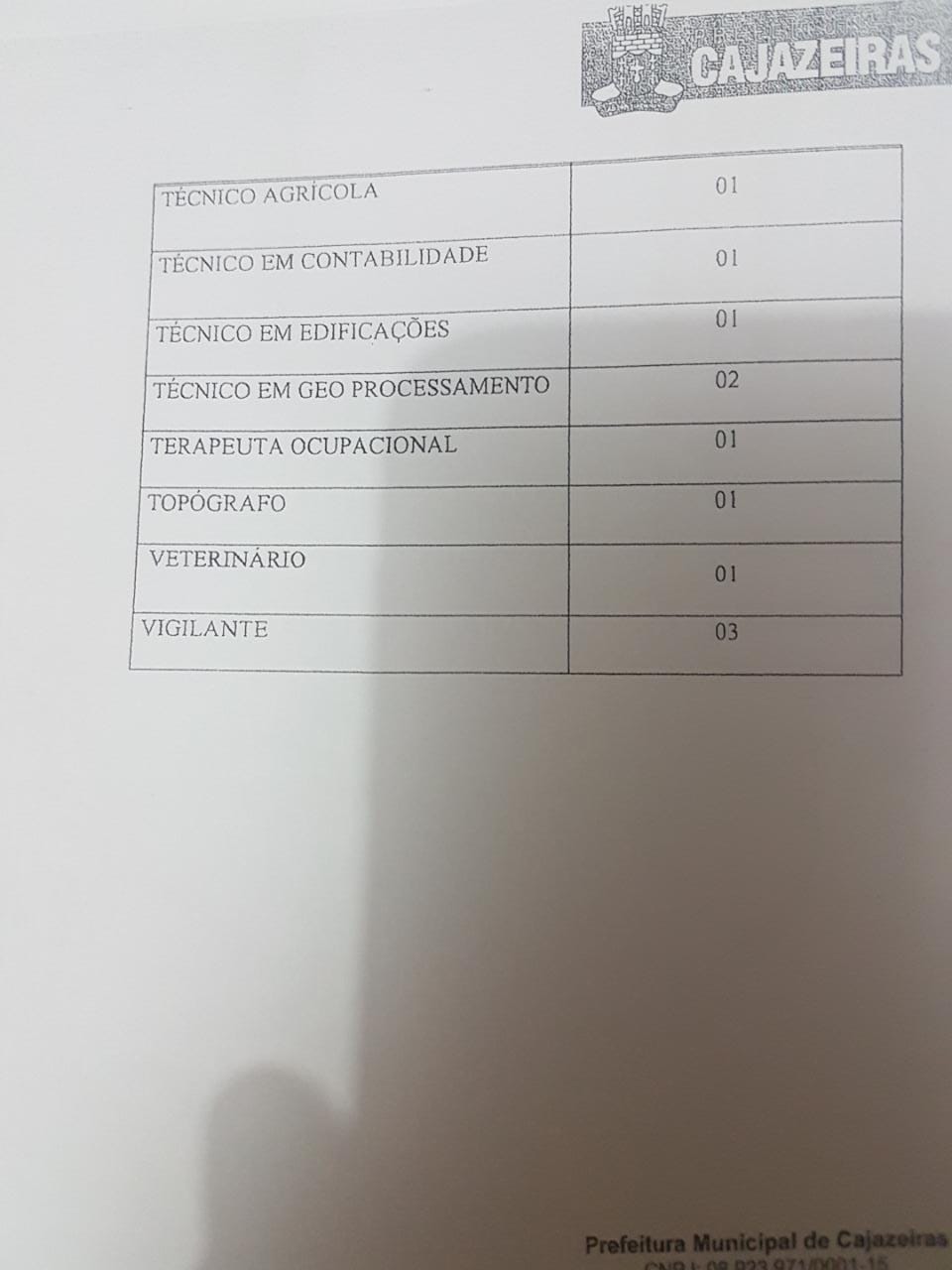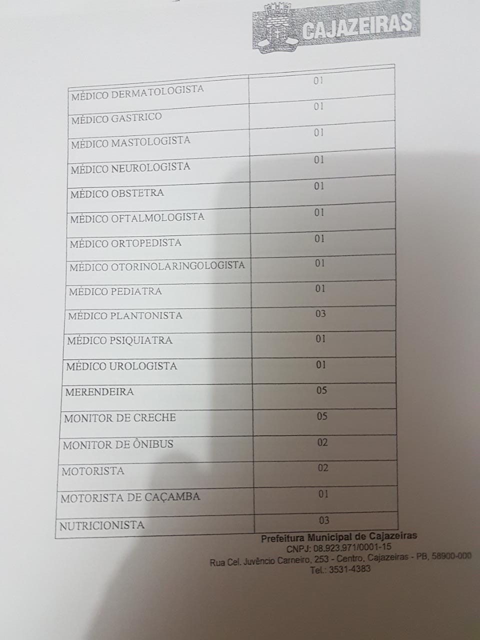 Após levantamento feito das vagas em vacância, e a necessidade de se criar novas funções, serão definidos o número de vagas a ser oferecido pelo certame em várias áreas, conforme a necessidade atual do executivo cajazeirense.