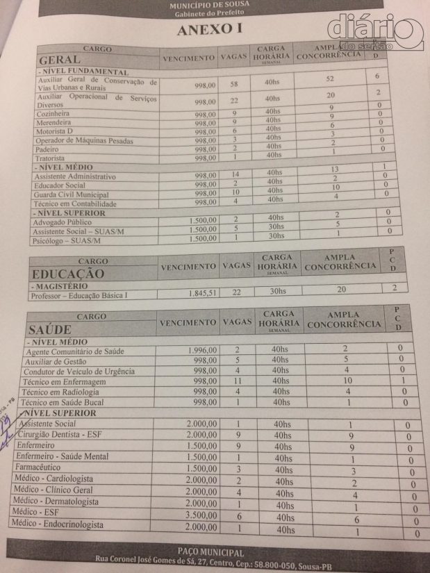 VEJA OS CARGOS! 249 vagas estarão disponíveis no concurso público de Sousa; salários de até R$ 3,5 mil
