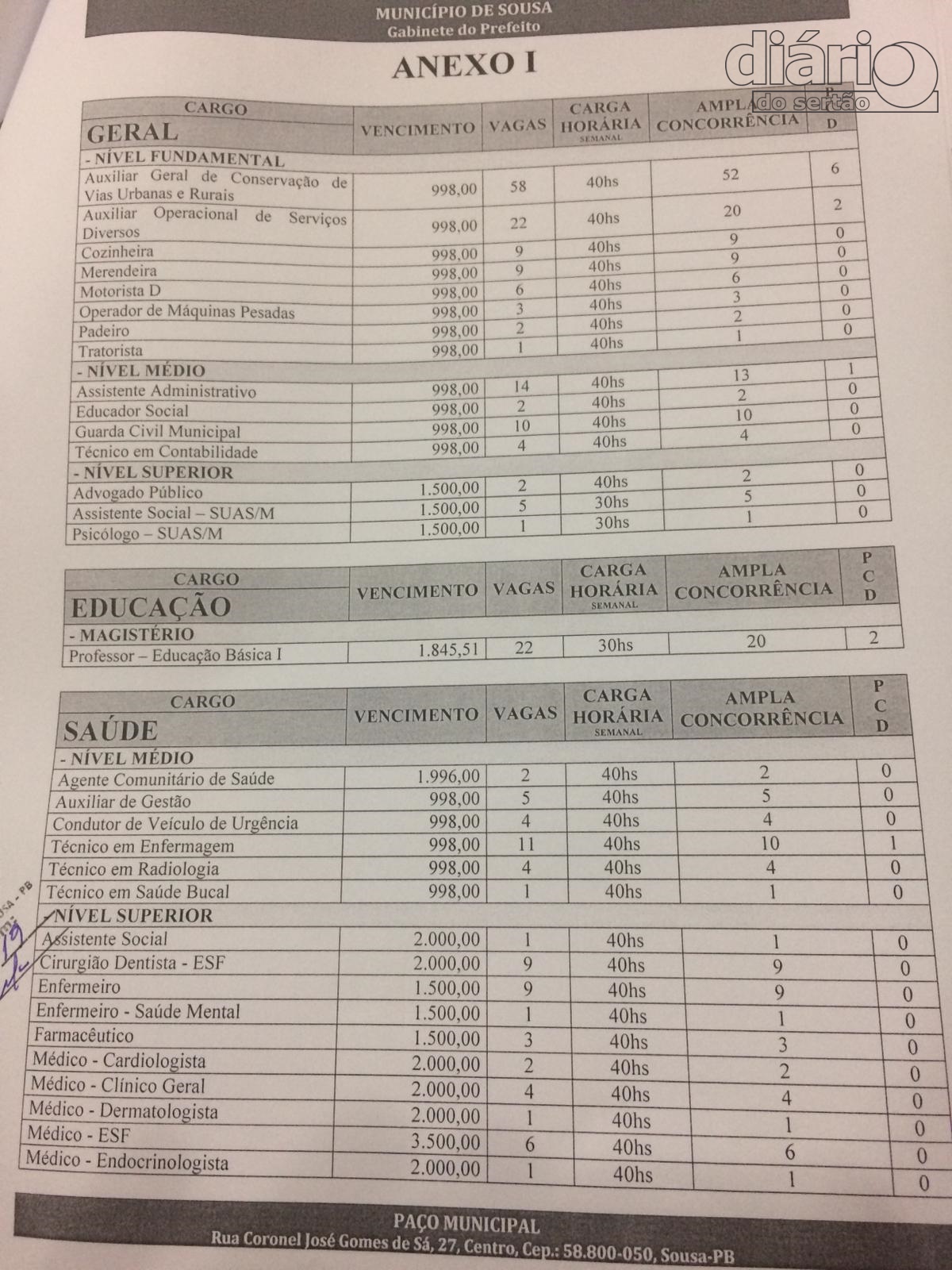 A reportagem do Diário do Sertão teve acesso ao projeto de lei com a distribuição dos cargos disponíveis para o certame. Veja abaixo!