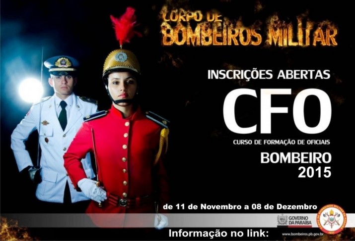 Começam nesta terça-feira (11) as inscrições para o processo seletivo do Curso de Formação de Oficiais (CFO) do Corpo de Bombeiros da Paraíba. São ofertadas 15 vagas, sendo cinco delas para mulheres. Para concorrer às vagas, os candidatos precisam ter realizado as provas do Exame Nacional do Ensino Médio (Enem), no último fim de semana. As inscrições para o concurso ficam abertas até a próxima terça-feira (18).