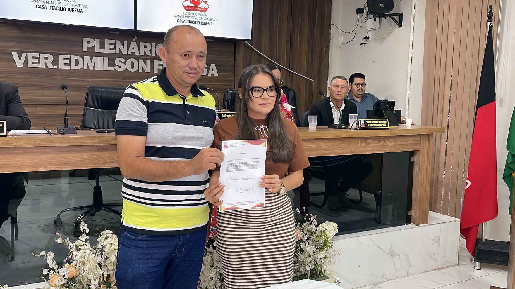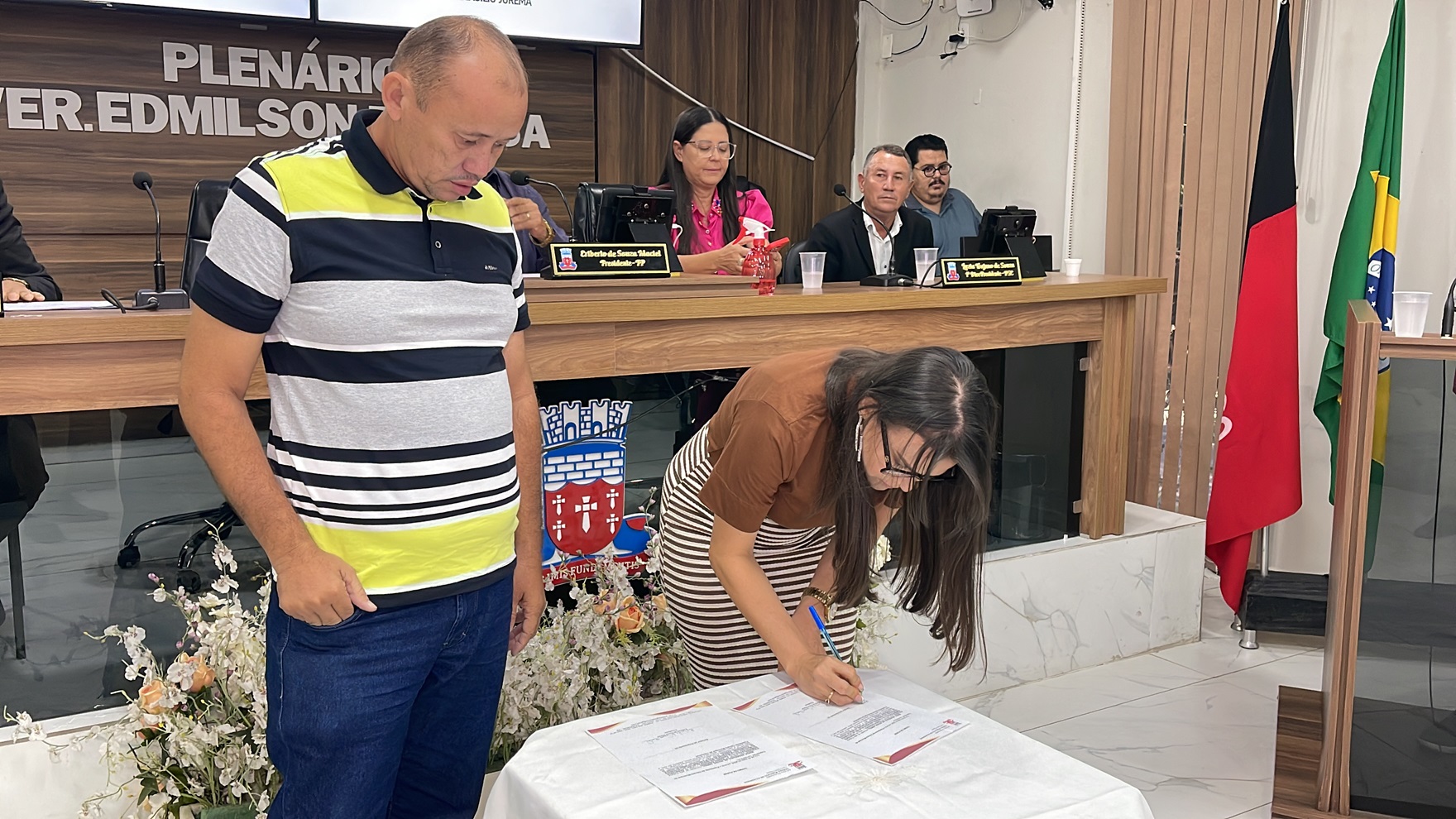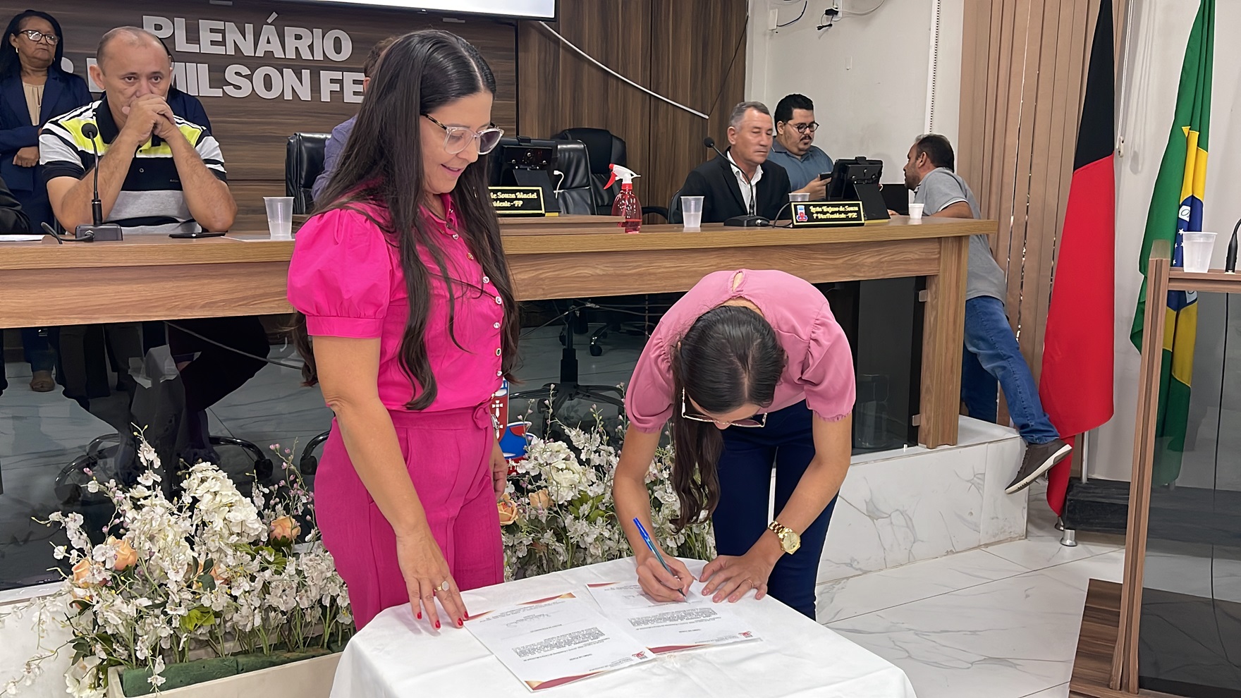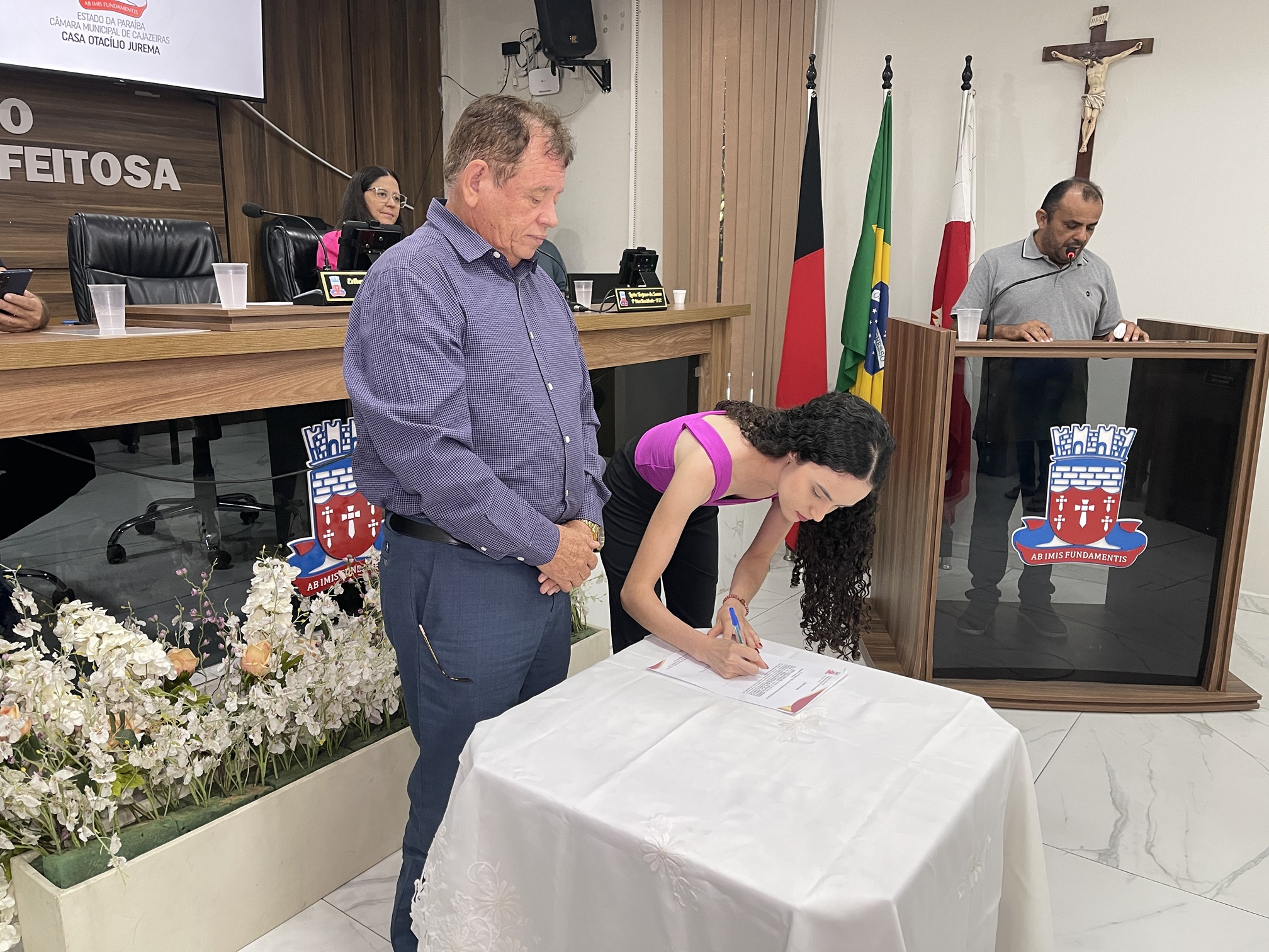 Presidente da Câmara de Cajazeiras empossa uma das concursadas (Foto: Fernanda Layse/Diário do Sertão)