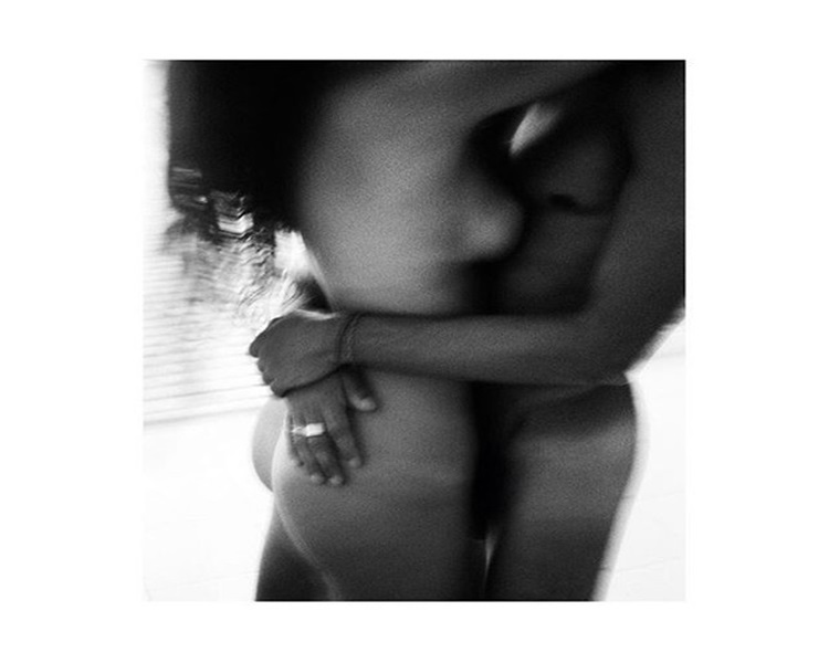 Na misteriosa foto p&b, clicada por Mario Testino, a atriz aparece nua abraçada ao amado, José Loreto, também nu.