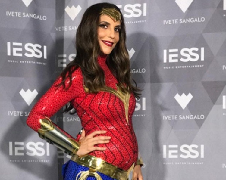 Super Veveta! Ivete Sangalo se vestiu de Mulher-Maravilha para uma festa em Aracaju, Sergipe, na noite de sábado (7).” A mulher mamãe maravilha que você respeita”, escreveu a cantora, que está grávida de gêmeas e adentrou a madrugada cantando.