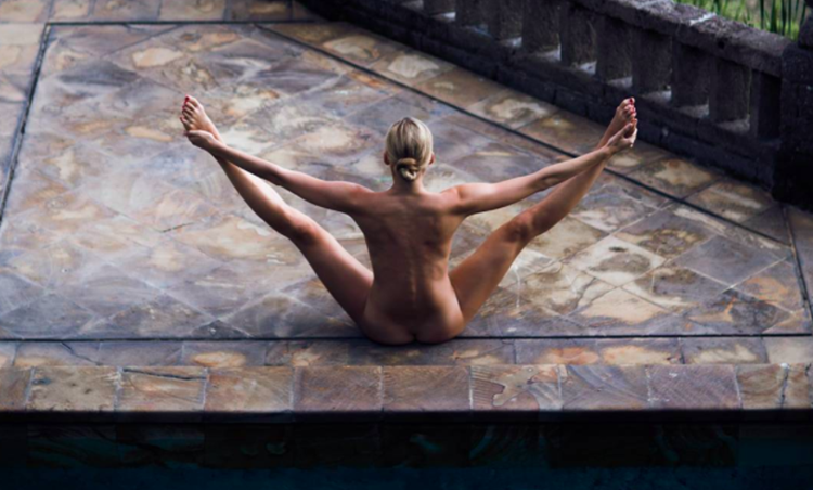 Modelo bomba no Instagram ao promover o nudismo e a prática de ioga