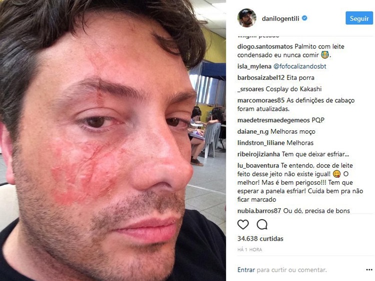 Danilo Gentili mostra foto onde sofreu queimadura no rosto com uma panela de pressão