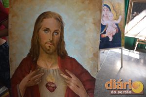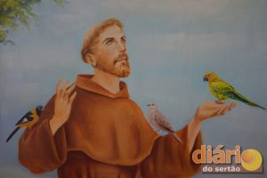 Algumas vezes esses dois panoramas se misturam, como é o caso de um grande retrato de São Francisco da Assis em meio à paisagem da caatinga e cercado por pássaros típicos da fauna sertaneja.
