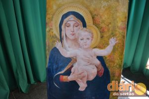 Com traços realistas e cores fortes, as pinturas de Mívia retratam figuras religiosas, mas também a realidade e as culturas do povo sertanejo.