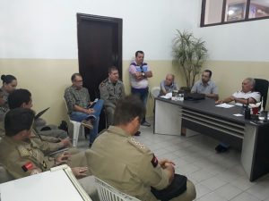 A reunião aconteceu no gabinete do Prefeito que fez questão de presidir os trabalhos, estiveram presentes todos os secretários municipais que participam diretamente do evento, O Tenente-Coronel Guedes, Comandante do 6º BPM, o Major Edênio, Comandante do 5º BBM, Capitão Fernando, Chefe da seção de Planejamento do 6º BPM, Capitão Alves, Comandante da 1ª Companhia, o Sargento Iranilton e o Cabo Fem Adriane.