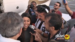 Paraibana vencedora do The Voice Kids desembarcou de jatinho no aeródromo de Cajazeiras e foi disputada por jornalistas e fãs. Depois puxou carreata pelas ruas