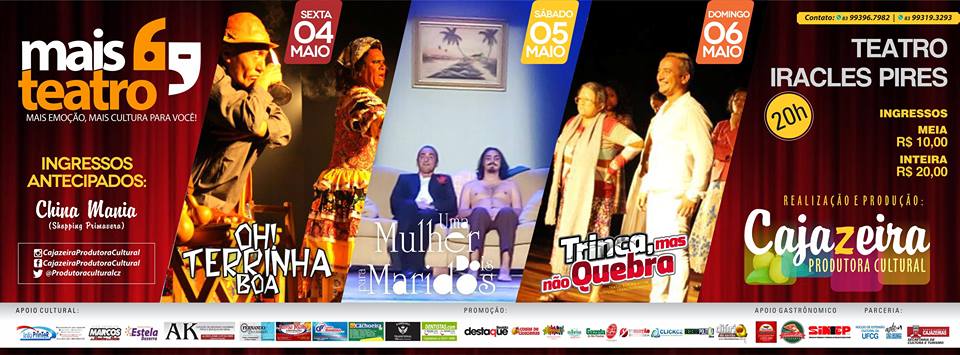 Os três espetáculos começam todos às 20 horas, com ingressos a R$ 20,00 (inteira) e R$ 10,00 (meia). A Cajazeiras Produtora Cultura é responsável pela produção das peças.