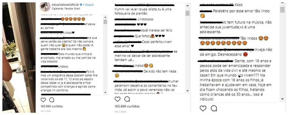 Veja alguns comentários após postagem de Eduarda Brasil!