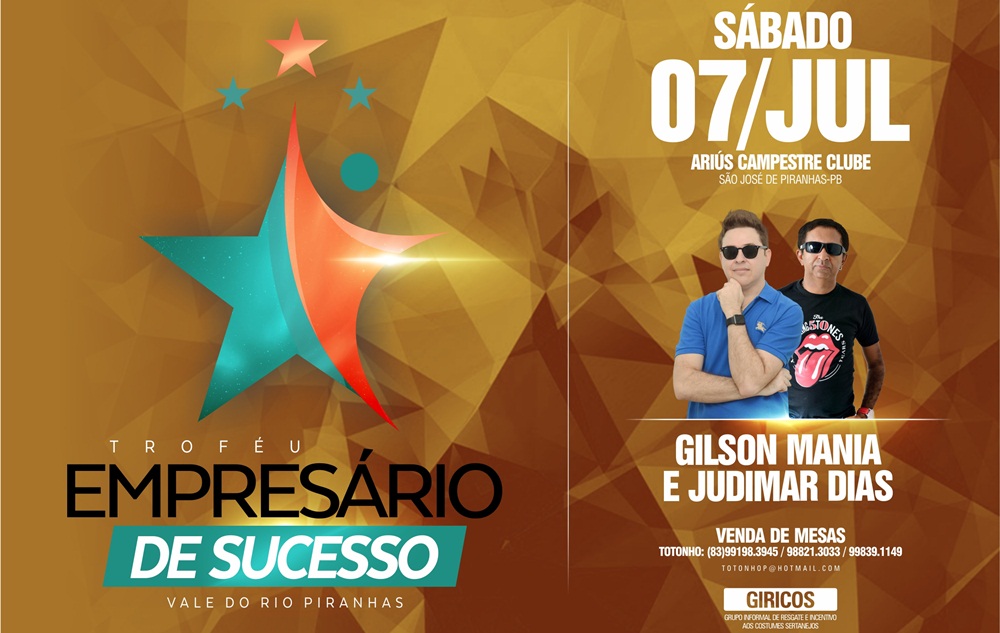 O Grupo Informal de Resgate e Incentivo aos Costumes Sertanejos (GIRICOS) divulgou nesta sexta-feira (6), a lista de homenageados do Troféu Empresário de Sucesso Vale do Rio Piranhas.