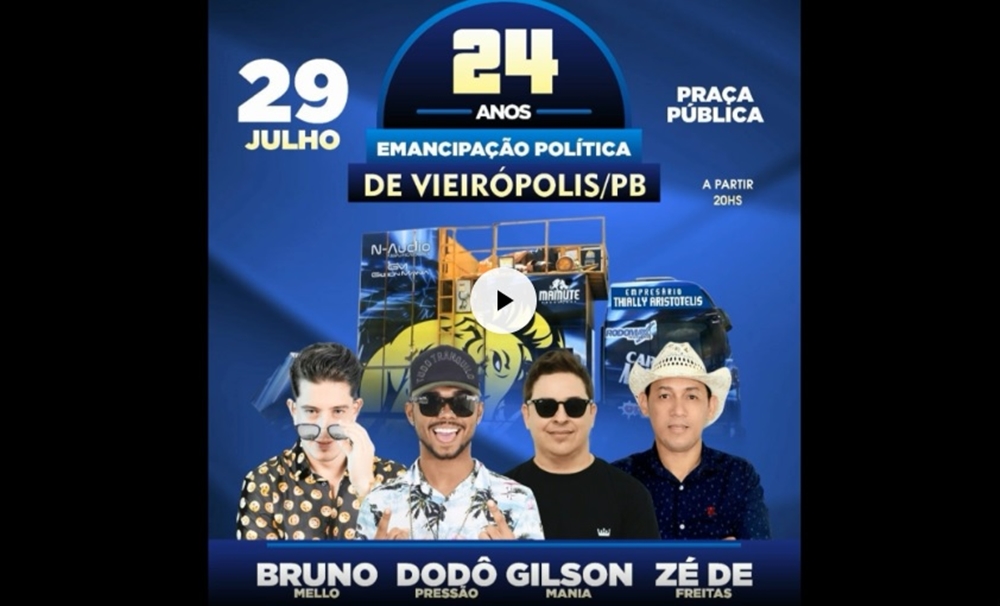 4 ATRAÇÕES: Vieirópolis promove grande festa pública e promete movimentar o Sertão nesse final de semana