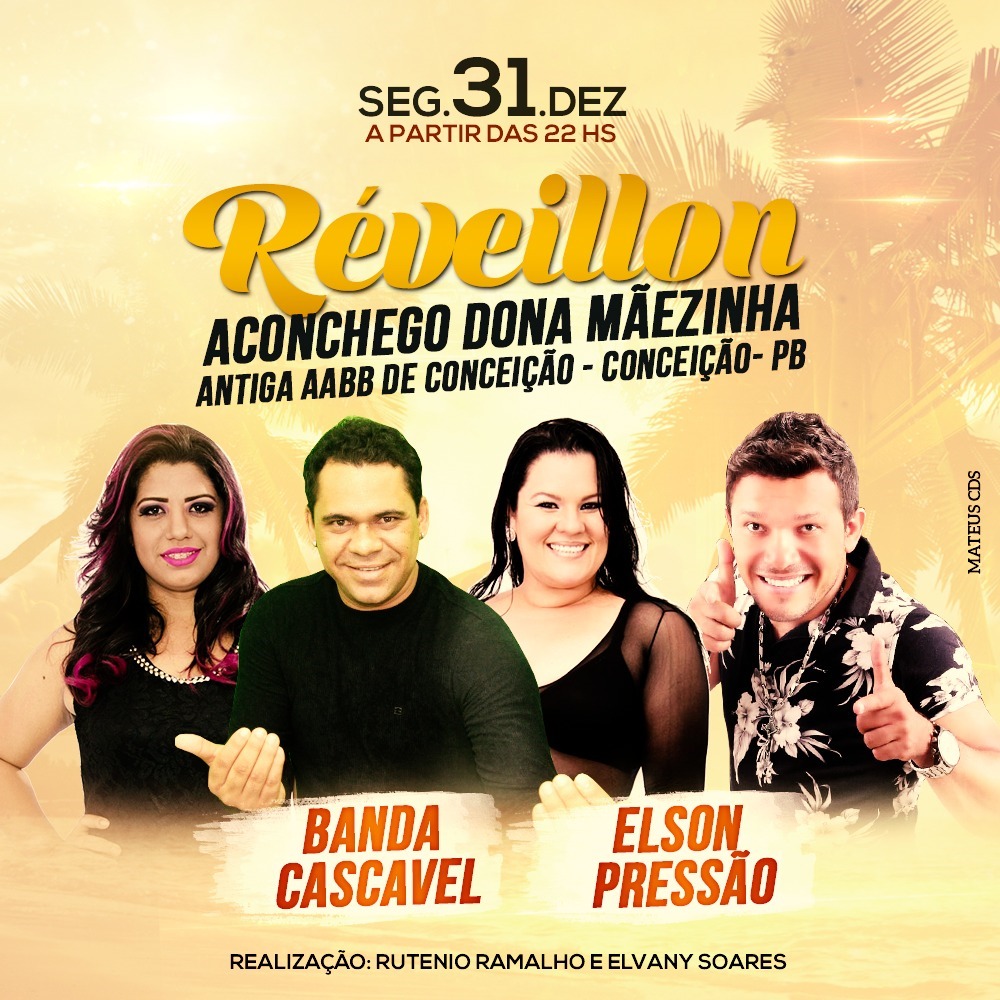 Em Conceição, no Vale do Piancó, a festa do 31 na antiga AABB fica por conta da Banda Cascavel e Elson Pressão.
