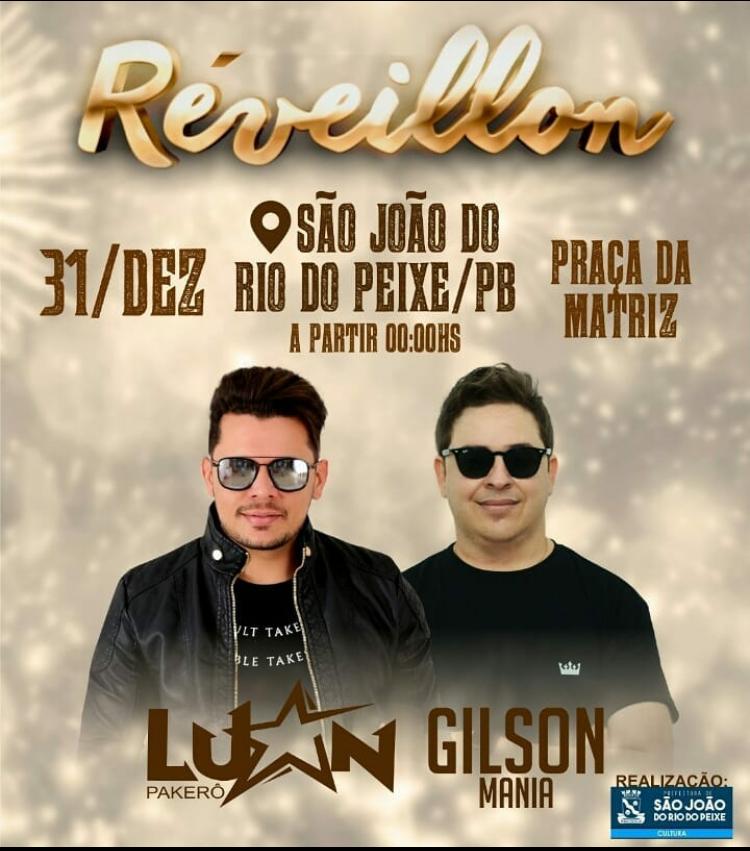 Em São João do Rio do Peixe o dia 31 de dezembro terá em praça pública Luan Pakerô e Gilson e Mania.