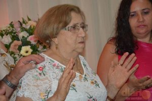 O padre Janduí de Sá Alves, ao final da celebração, abençoou a aniversariante e em seguida todos os presentes cantaram para homenagear quem estava comemorando mais uma ano de vida.