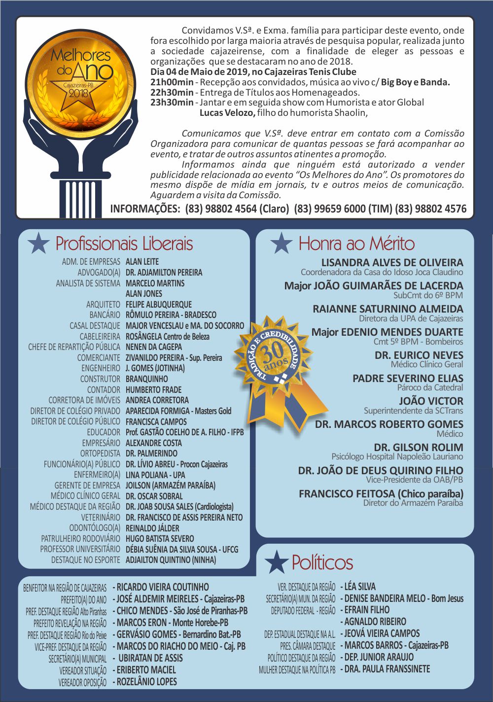 Há 30 anos é realizado em Cajazeiras um dos eventos mais tradicionais do Sertão da Paraíba, “OS MELHORES DO ANO”, diferente de outras cidades a festa resistiu a todo esse tempo e vem se reinventando ano após ano, fazendo parte do calendário de eventos da cidade.