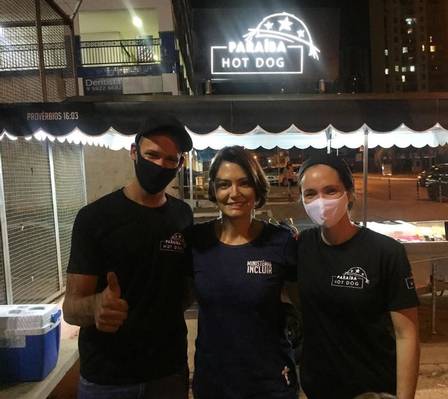 Michelle Bolsonaro aproveitou a noite do último domingo (27) para relaxar na companhia de amigos e foi vista numa carrocinha de cachorro-quente ‘Paraíba Hot Dog’, em Brasília. Ela voltava de um culto quando passou no local.