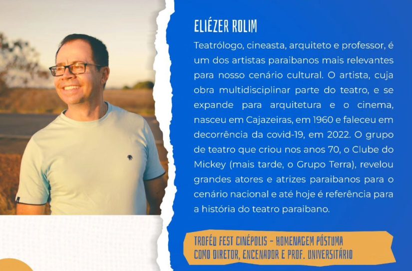 Eliézer, que morreu no início de 2022 em decorrência da Covid-19, será o homenageado no estado da Paraíba com o Troféu Fest Cinépolis, homenagem póstuma como diretor, encenador e professor universitário.