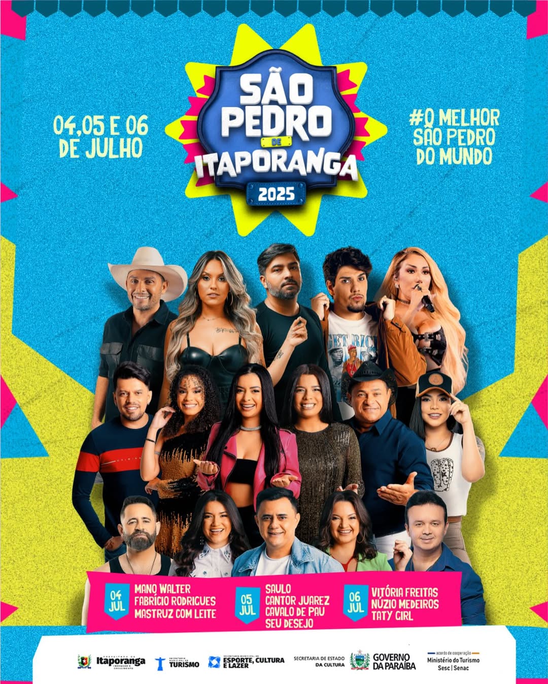 - Dia 6 de julho: Vitória Freitas, Nuzio Medeiros e Taty Girl.