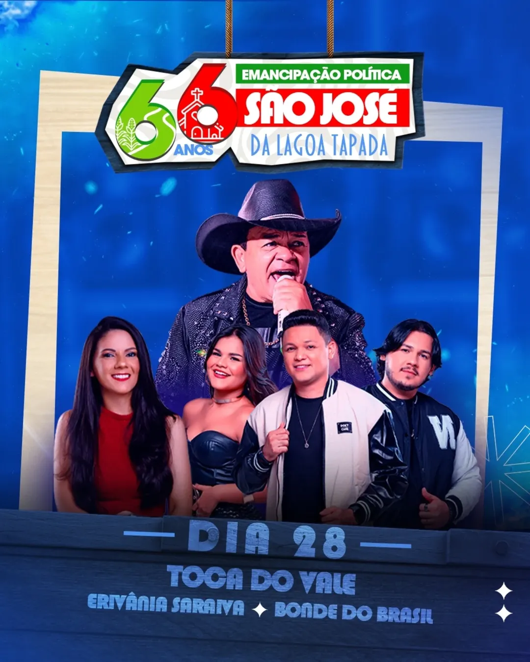 - Dia 28 de julho: Toca do Vale, Erivânia Saraiva e Bonde do Brasil.