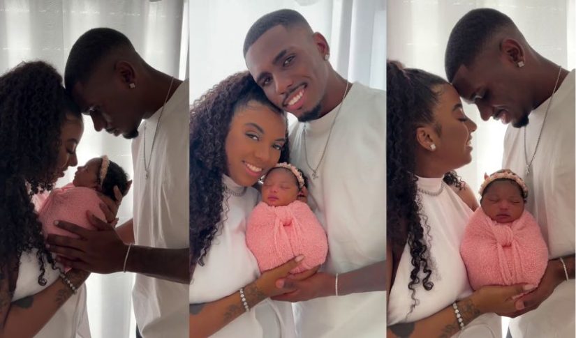 Evertton Araújo, jogador do Flamengo, celebra o nascimento de sua primeira filha com Déborah Couto